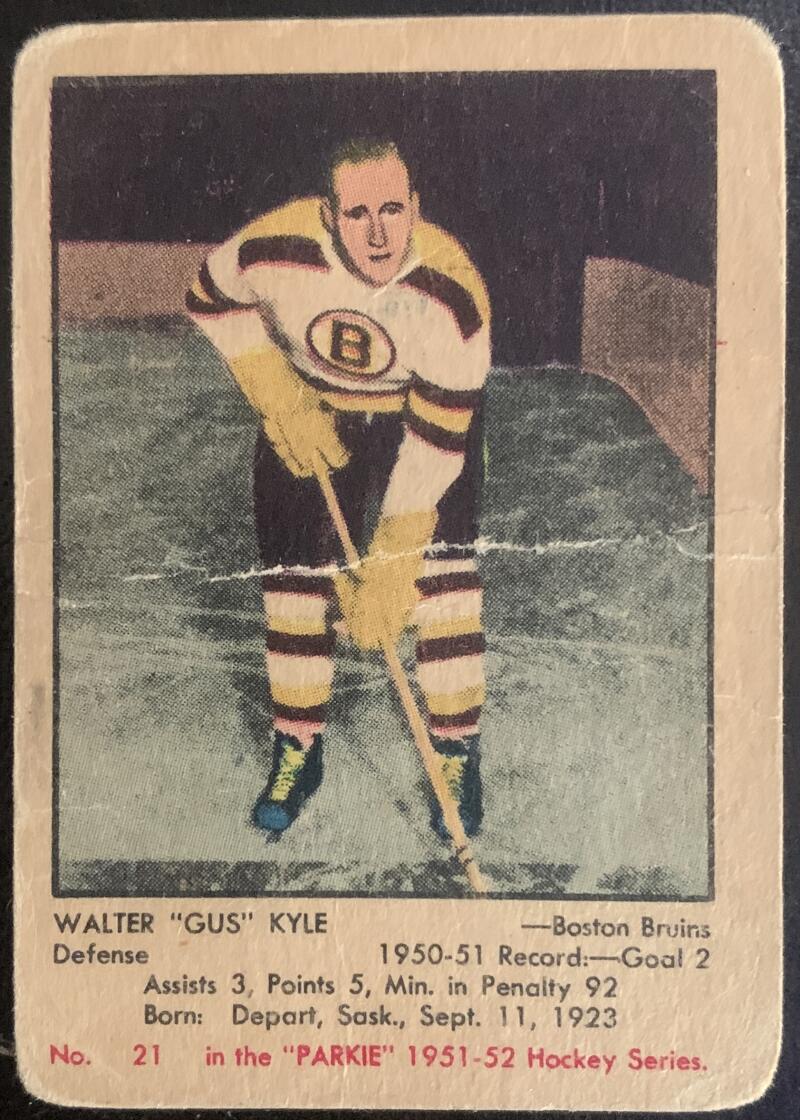 1951-52 Parkhurst #21 Gus Kyle RC Rookie Bruins Vintage Hockey V50567