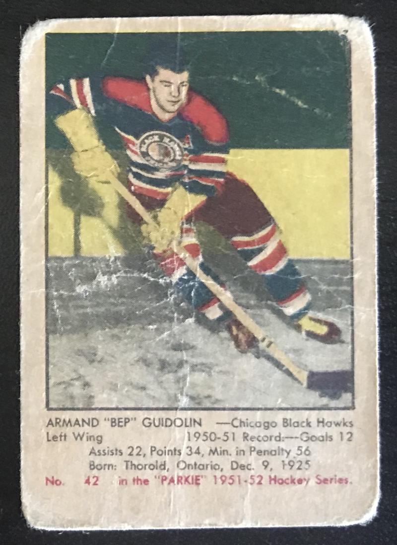 1951-52 Parkhurst #42 Bep Guidolin RC Rookie Blackhawks Vintage Hockey