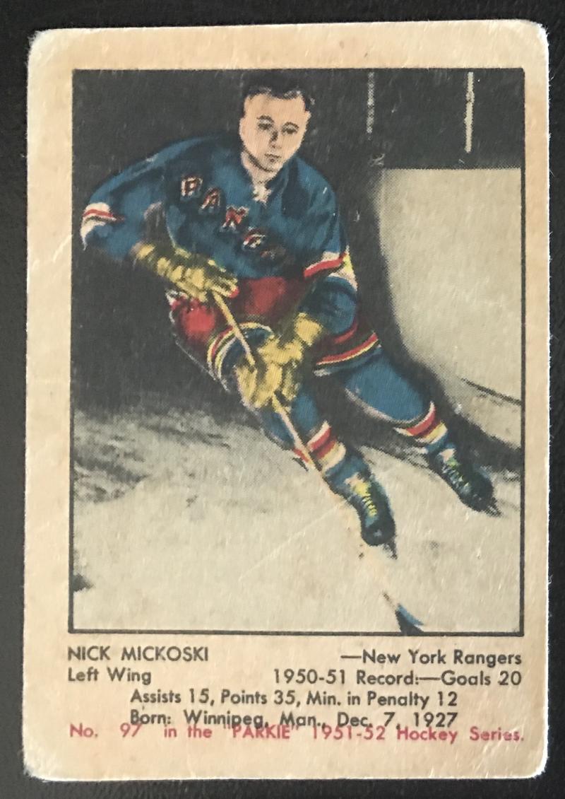1951-52 Parkhurst #97 Nick Mickoski RC Rookie Rangers Vintage Hockey