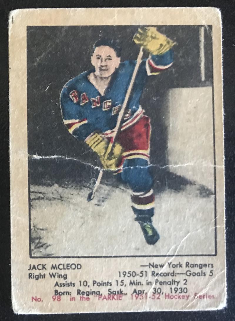 1951-52 Parkhurst #98 Jack McLeod RC Rookie Rangers Vintage Hockey