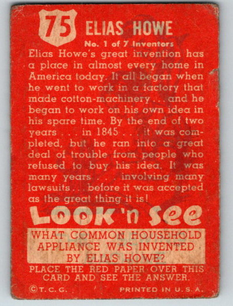 1952 Topps Look 'n See #75 Elias Howe Vintage Card V8971