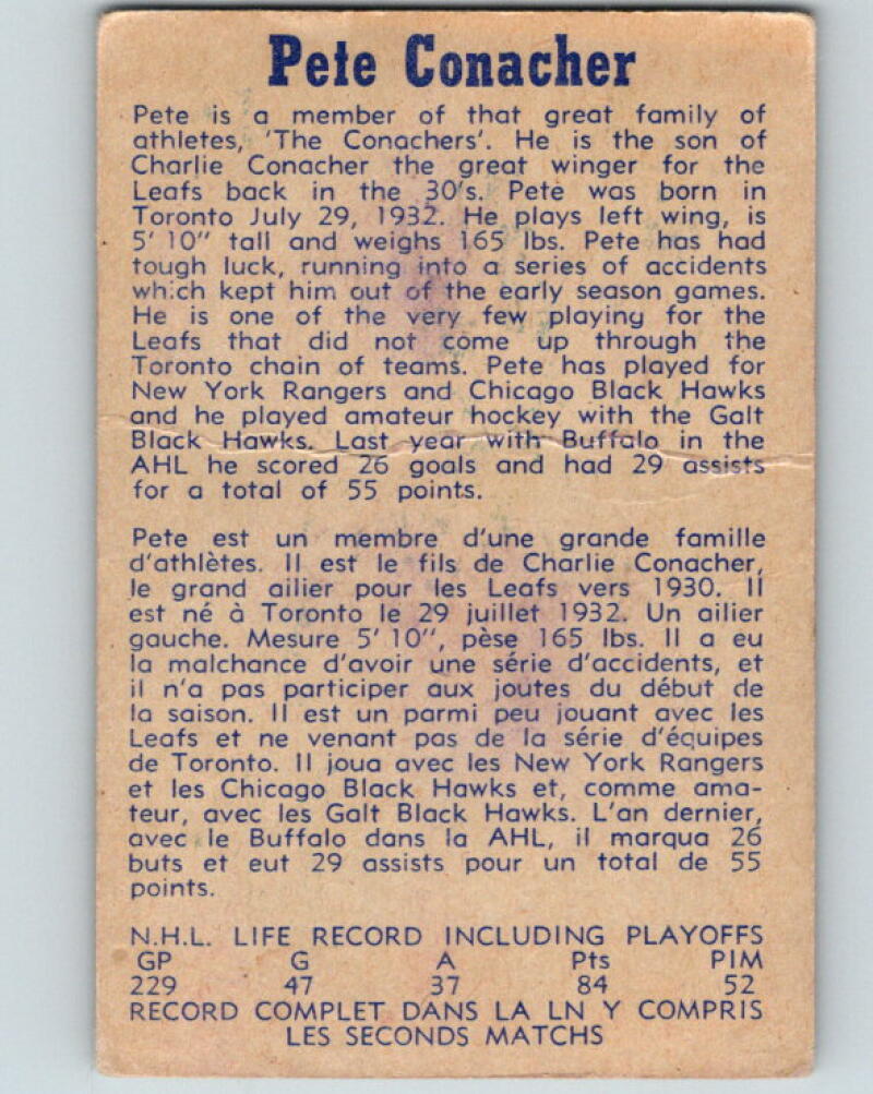 1957-58 Parkhurst #T14 Pete Conacher Toronto Maple Leafs V44098