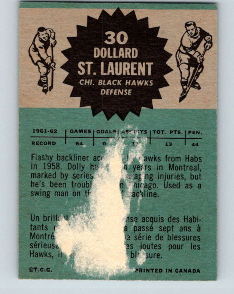1962-63 Topps #30 Dollard St. Laurent Chicago Blackhawks V68