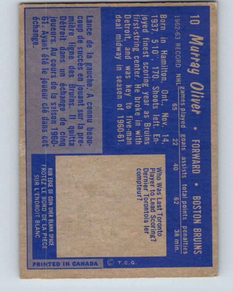 1963-64 Topps #10 Murray Oliver Boston Bruins V386