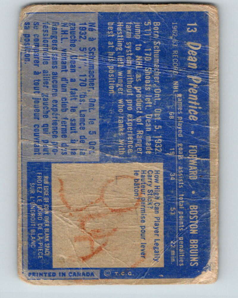 1963-64 Topps #13 Dean Prentice Boston Bruins V391