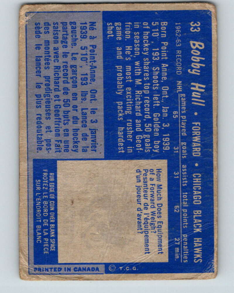 1963-64 Topps #33 Bobby Hull Chicago Blackhawks V415