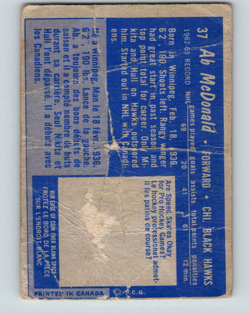 1963-64 Topps #37 Ab McDonald Chicago Blackhawks V420