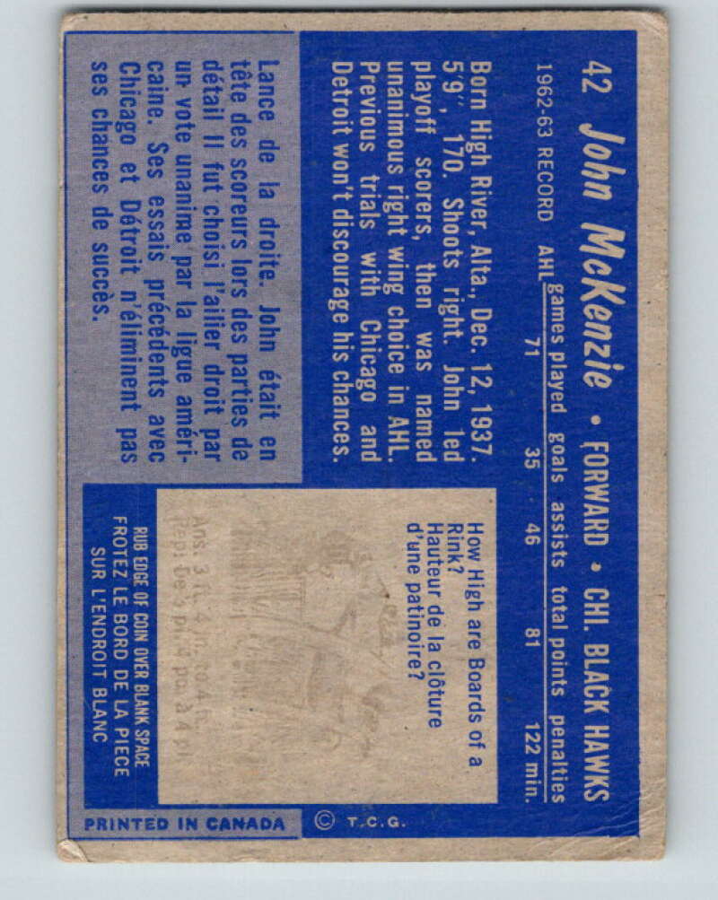 1963-64 Topps #42 John McKenzie Chicago Blackhawks V426