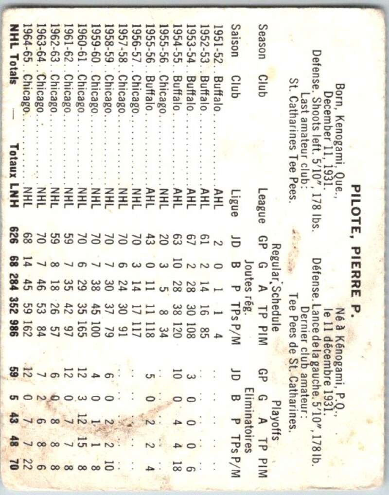 1965-66 Coca-Cola #21 Pierre Pilote Chicago Blackhawks X0032