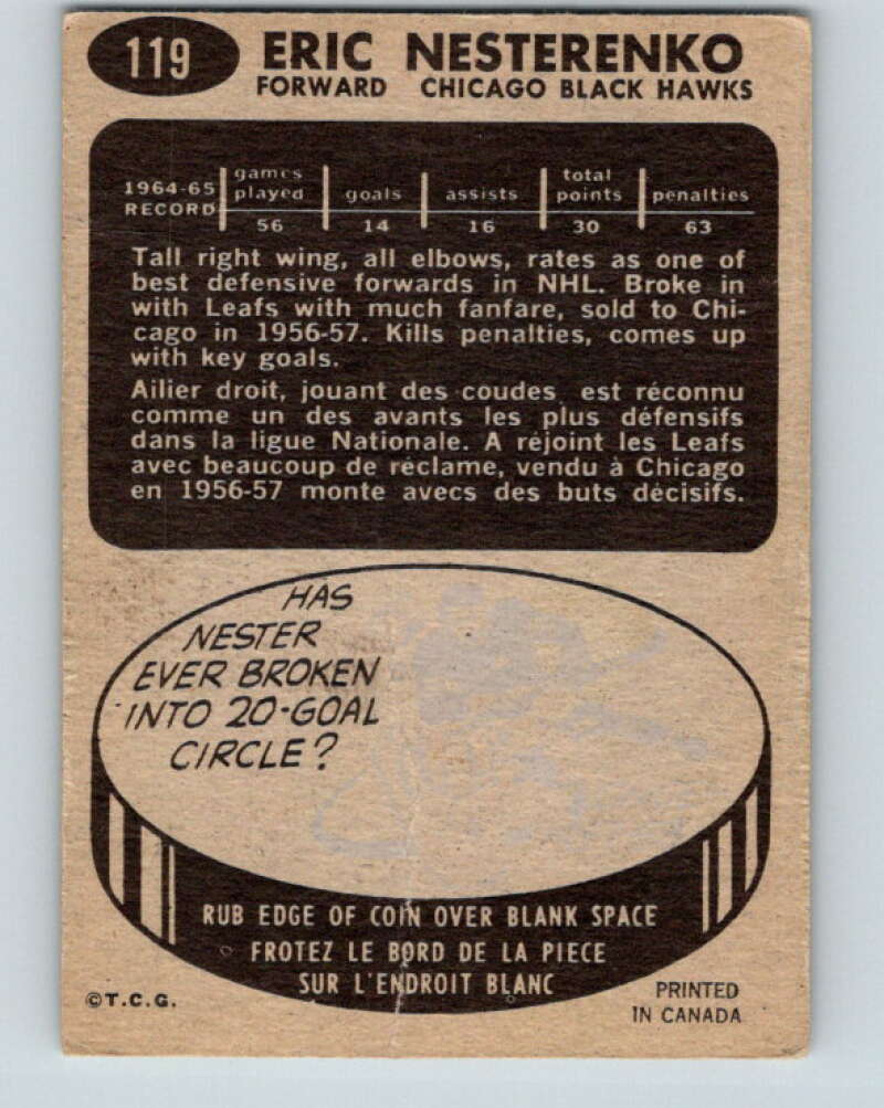 1965-66 Topps #119 Eric Nesterenko Chicago Blackhawks V603