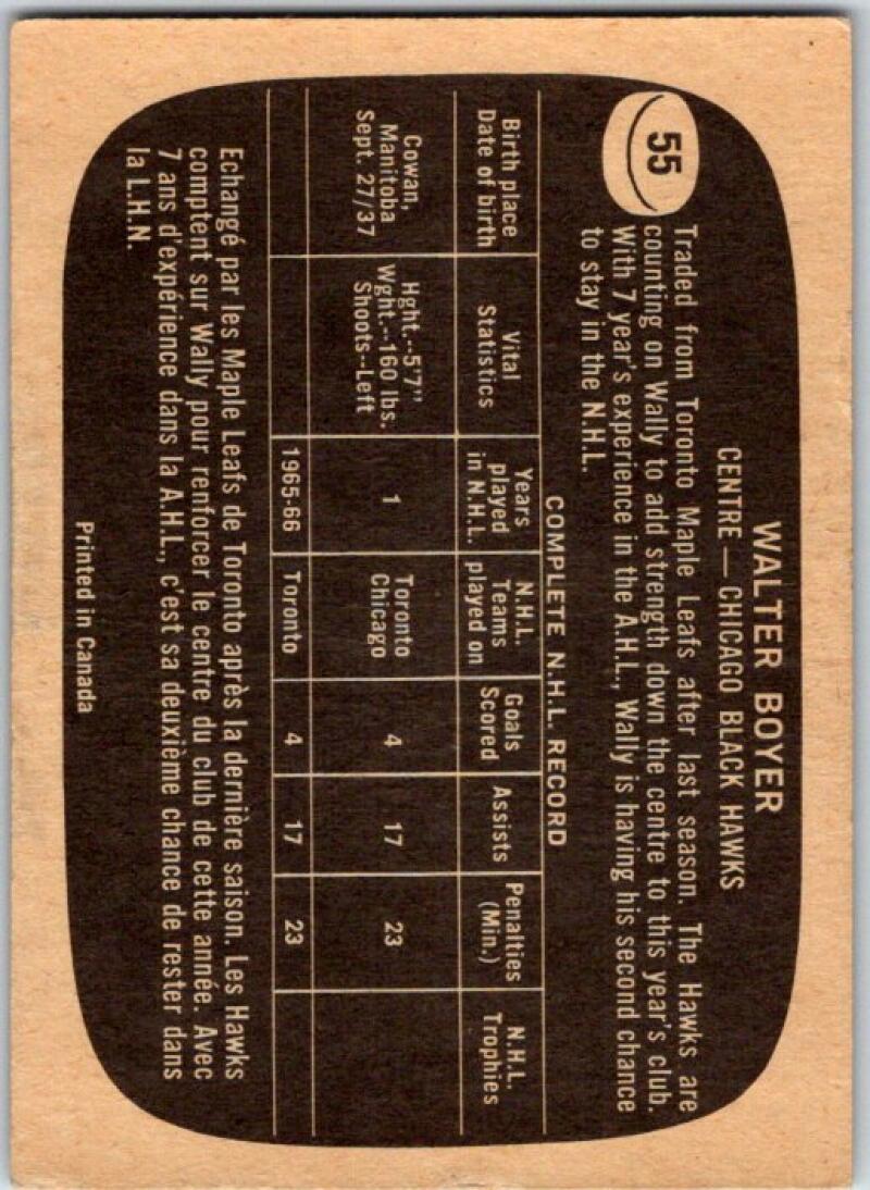 1966-67 Topps #55 Wally Boyer RC Rookie Chicago Blackhawks V48912