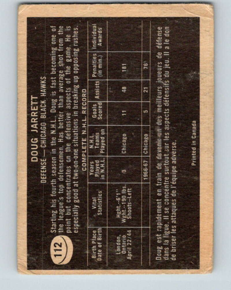 1967-68 Topps #112 Doug Jarrett Chicago Blackhawks V885
