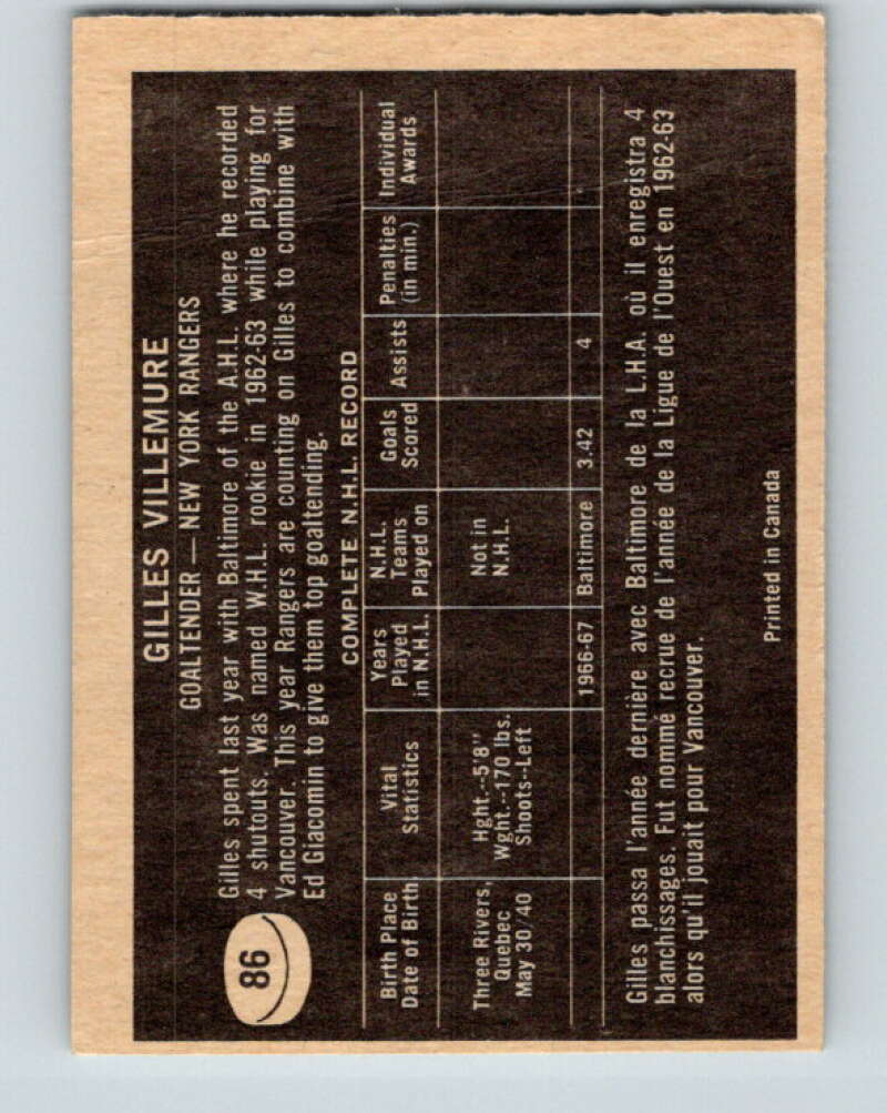 1967-68 Topps #86 Gilles Villemure New York Rangers V852