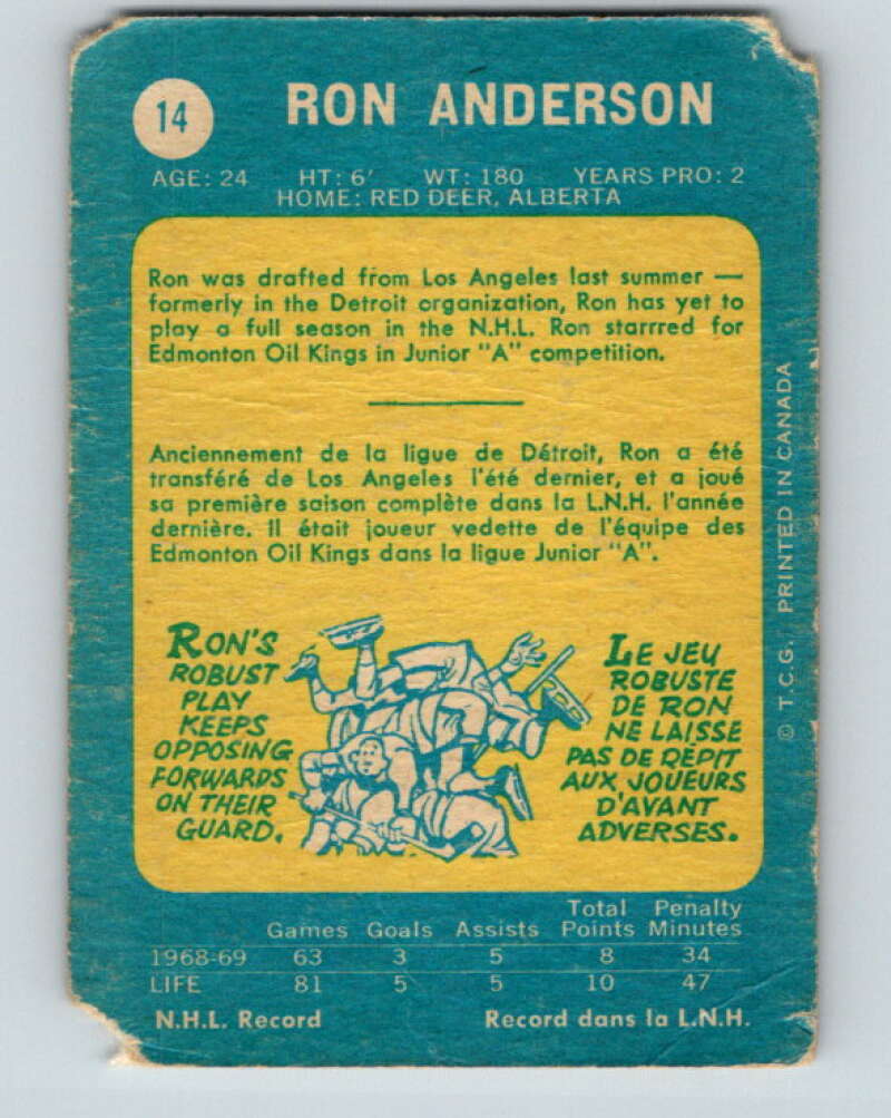 1969-70 O-Pee-Chee #14 Ron Anderson RC Rookie St. Louis Blues V1217