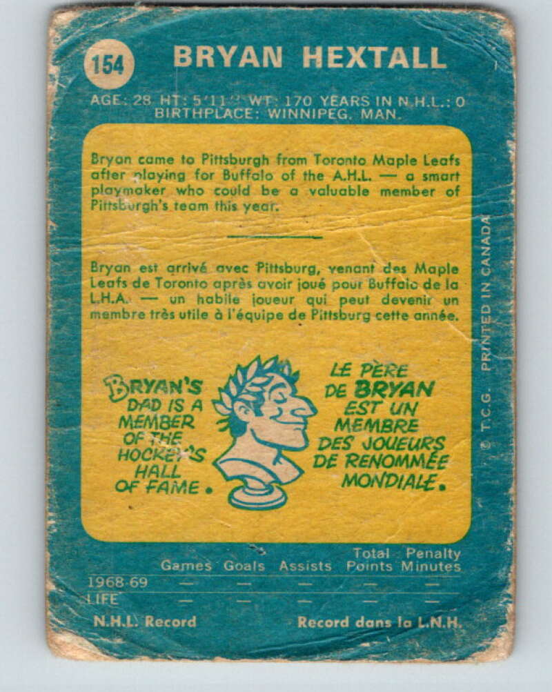 1969-70 O-Pee-Chee #154 Bryan Hextall RC Rookie Pittsburgh Penguins V1620