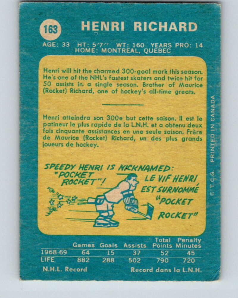 1969-70 O-Pee-Chee #163 Henri Richard Montreal Canadiens V1677