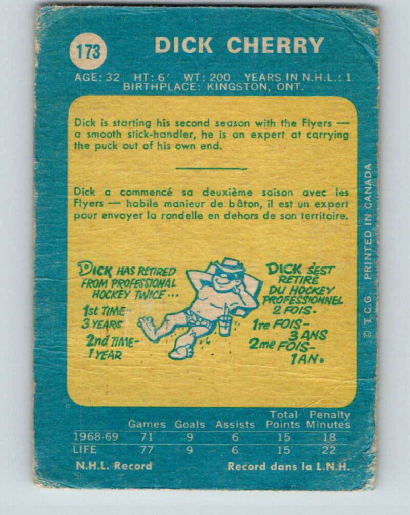 1969-70 O-Pee-Chee #173 Dick Cherry RC Rookie Philadelphia Flyers V1722