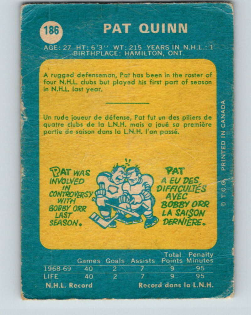 1969-70 O-Pee-Chee #186 Pat Quinn RC Rookie Toronto Maple Leafs V1790