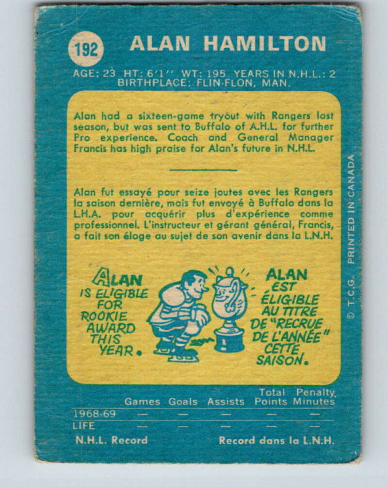 1969-70 O-Pee-Chee #192 Al Hamilton New York Rangers V1833