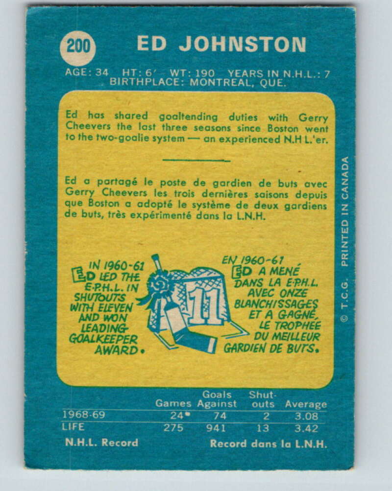 1969-70 O-Pee-Chee #200 Ed Johnston Boston Bruins V1872