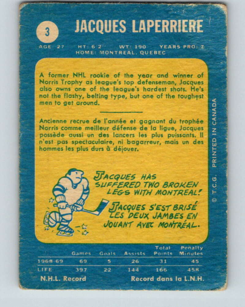 1969-70 O-Pee-Chee #3 Jacques Laperriere Montreal Canadiens V1192