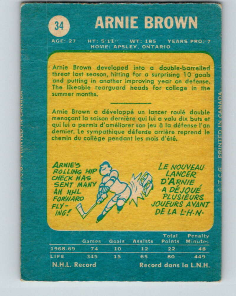 1969-70 O-Pee-Chee #34 Arnie Brown New York Rangers V1265
