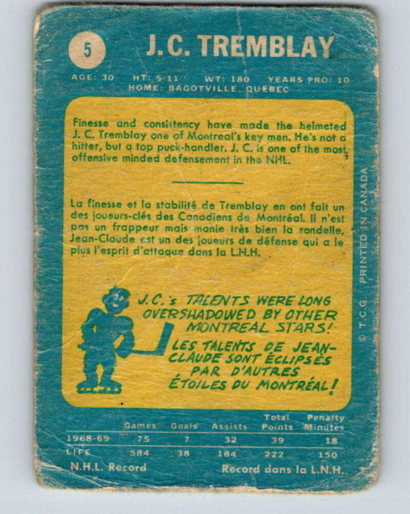 1969-70 O-Pee-Chee #5 J.C. Tremblay Montreal Canadiens V1193