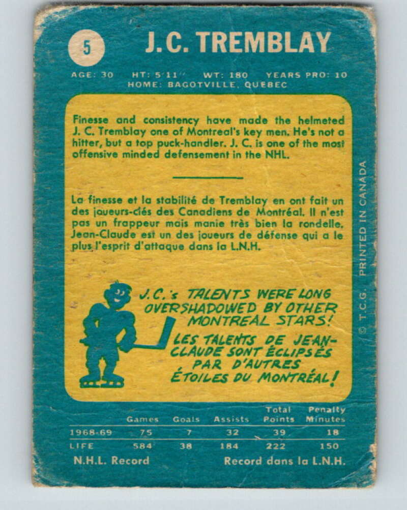 1969-70 O-Pee-Chee #5 J.C. Tremblay Montreal Canadiens V1197