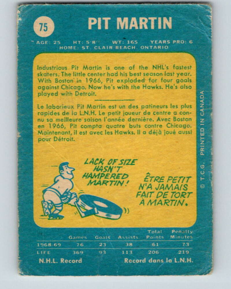 1969-70 O-Pee-Chee #75 Pit Martin Chicago Blackhawks V1360