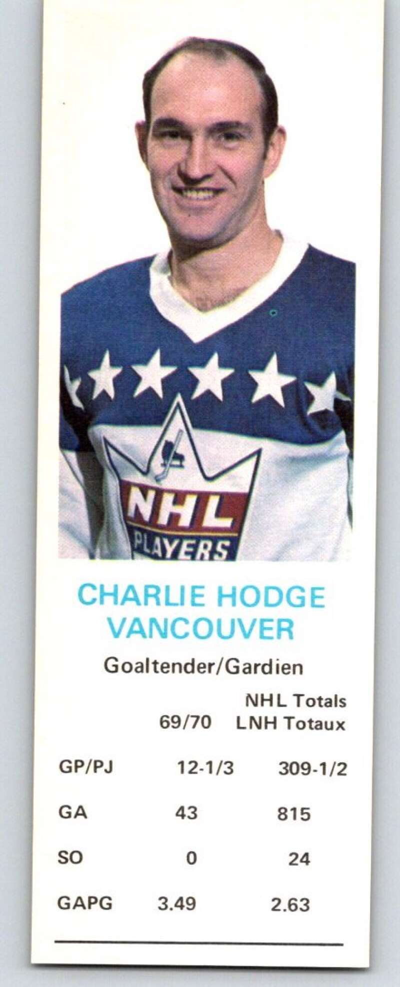 1970-71 Dad's Cookies #55 Charlie Hodge Vancouver Canucks X286