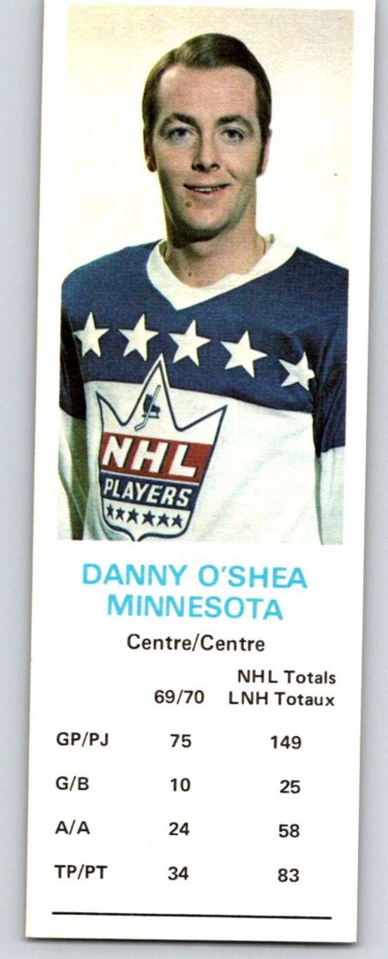 1970-71 Dad's Cookies #93 Danny O'Shea Minnesota North Stars X349
