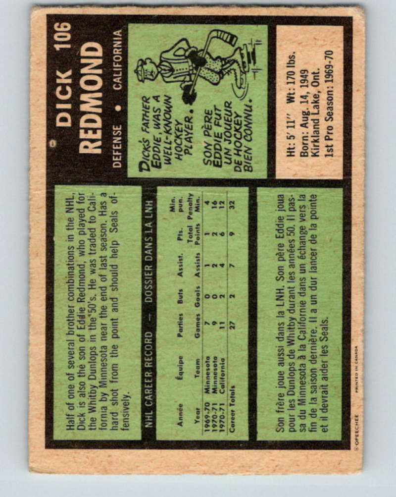 1971-72 O-Pee-Chee #106 Dick Redmond RC Rookie California Golden Seals 8801