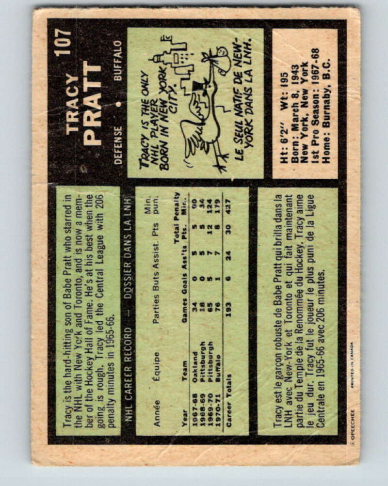 1971-72 O-Pee-Chee #107 Tracy Pratt Buffalo Sabres V9264