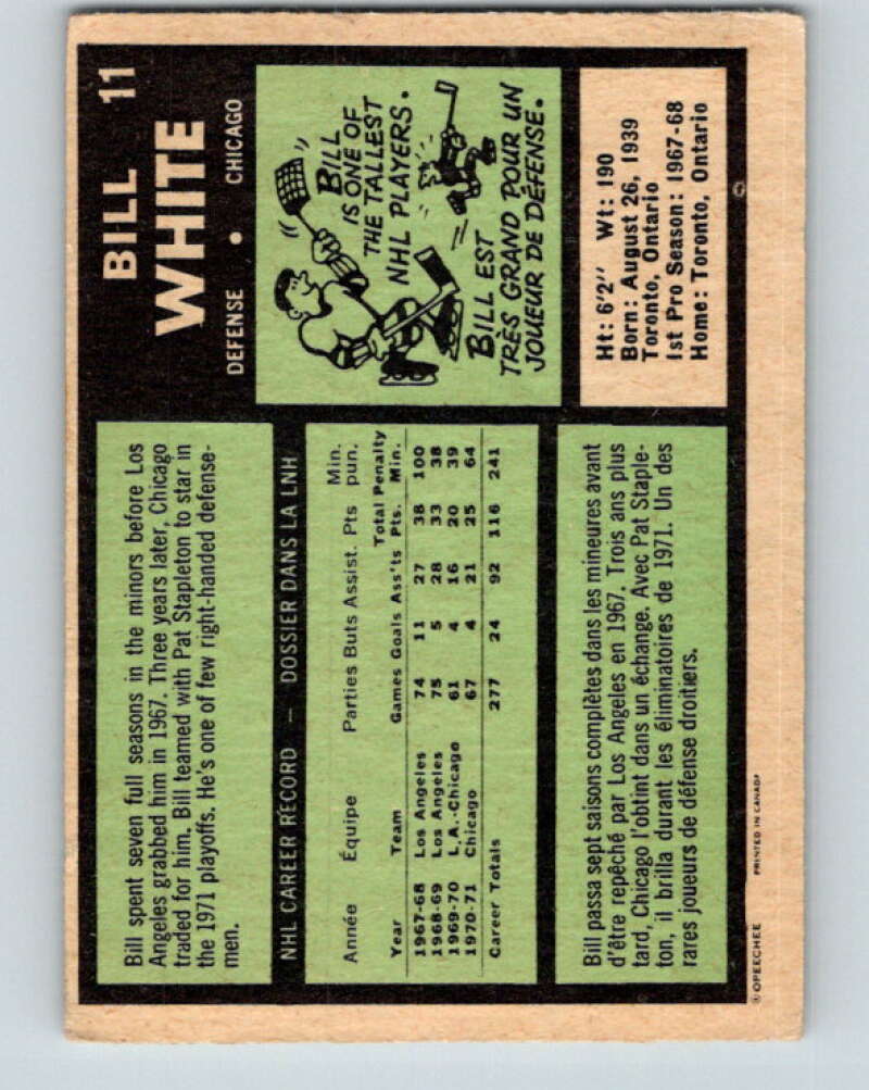 1971-72 O-Pee-Chee #11 Bill White Chicago Blackhawks V9008