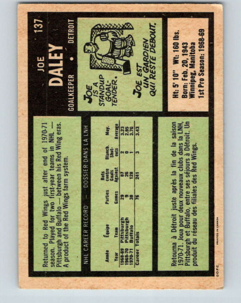 1971-72 O-Pee-Chee #137 Joe Daley Detroit Red Wings V9329