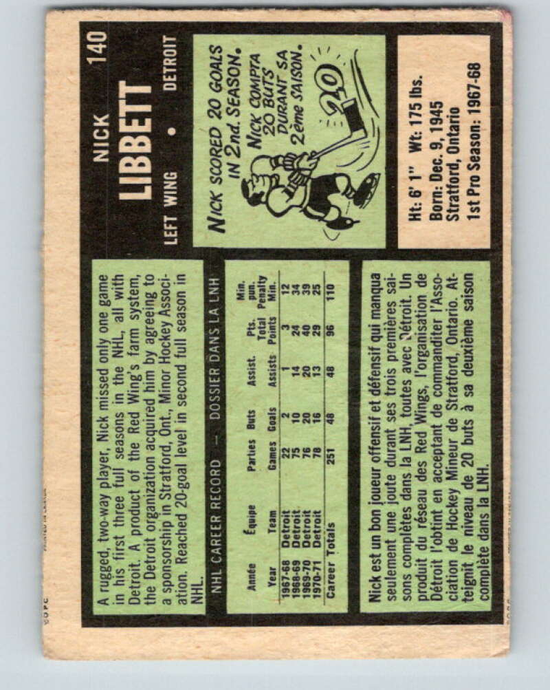 1971-72 O-Pee-Chee #140 Nick Libett Detroit Red Wings V9345