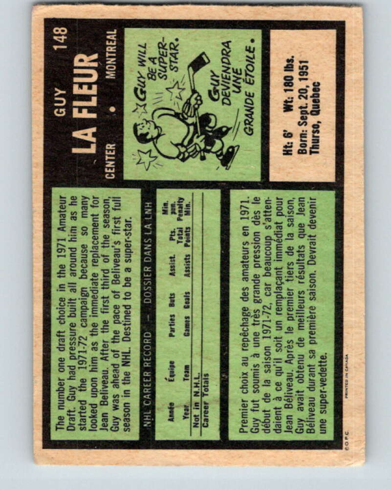 1971-72 O-Pee-Chee #148 Guy Lafleur UER RC Rookie Montreal Canadiens V9379