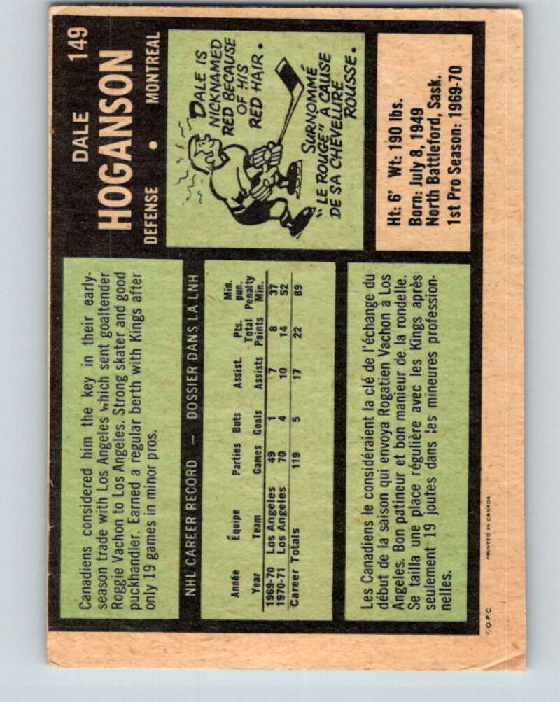1971-72 O-Pee-Chee #149 Dale Hoganson RC Rookie Montreal Canadiens V9381