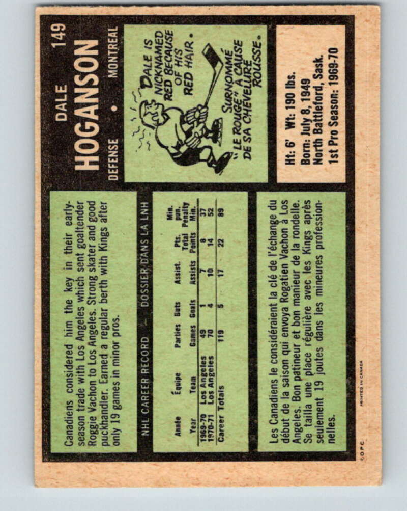 1971-72 O-Pee-Chee #149 Dale Hoganson RC Rookie Montreal Canadiens V9383