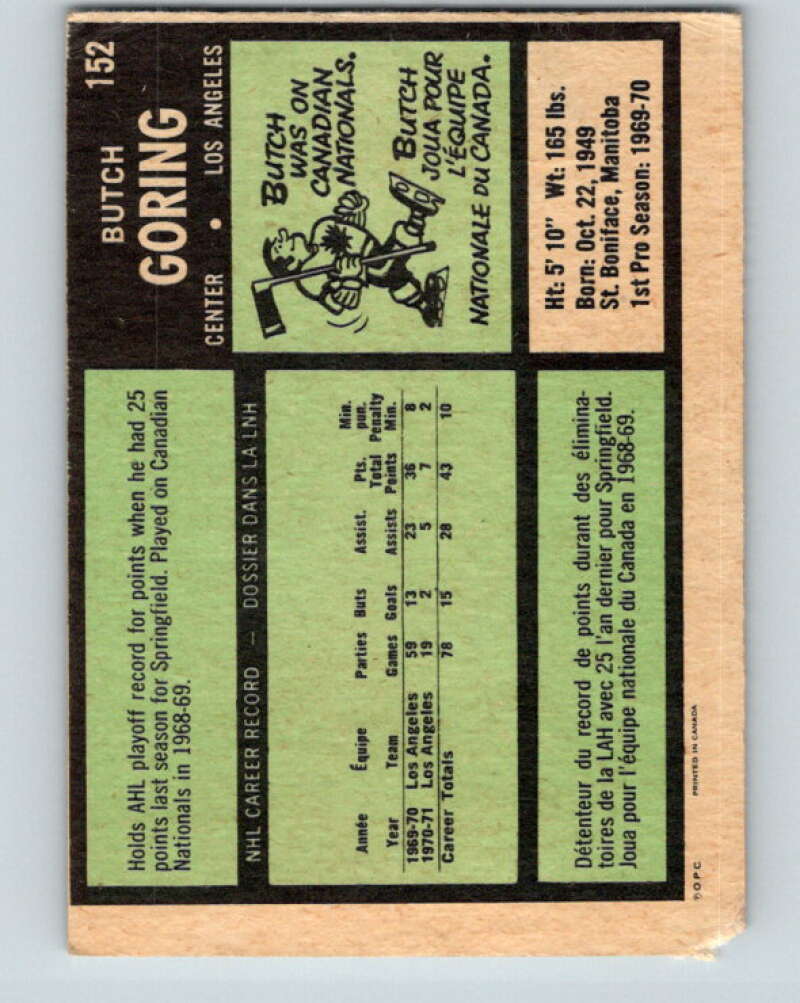 1971-72 O-Pee-Chee #152 Butch Goring RC Rookie Los Angeles Kings V9404