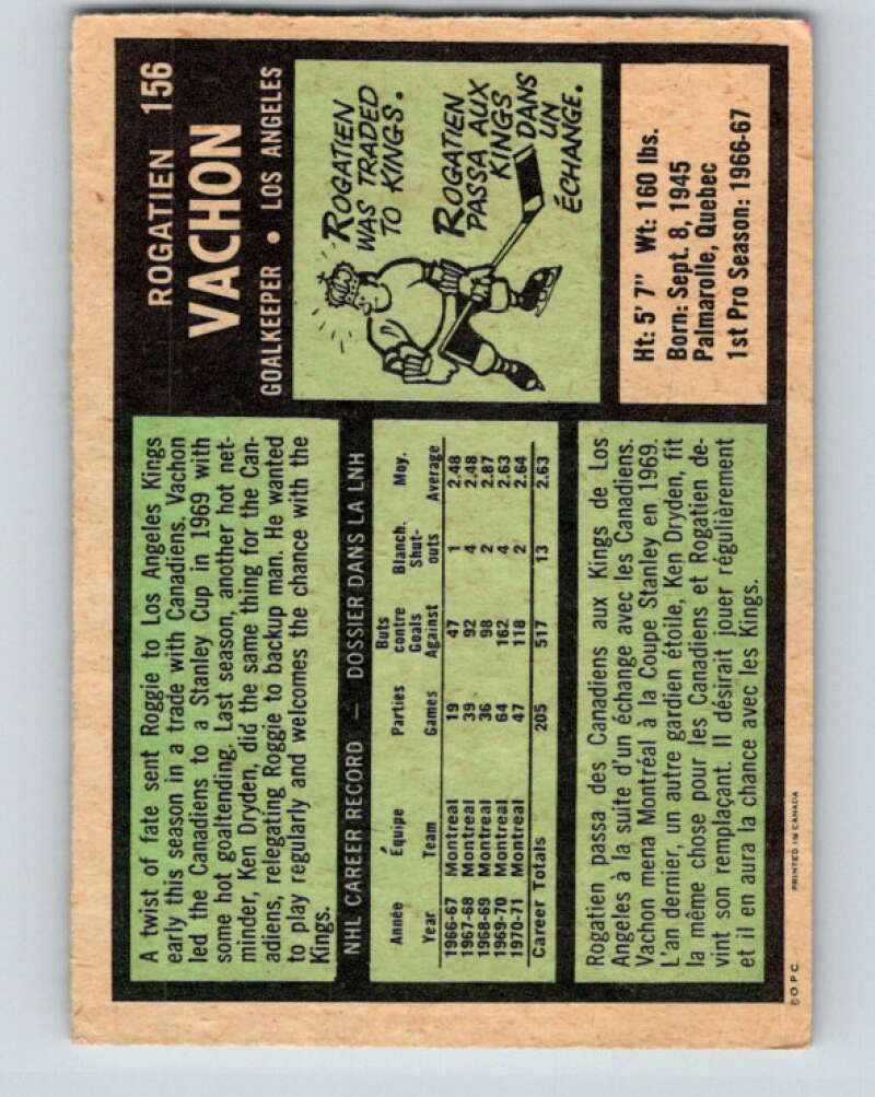1971-72 O-Pee-Chee #156 Rogie Vachon Los Angeles Kings V9416