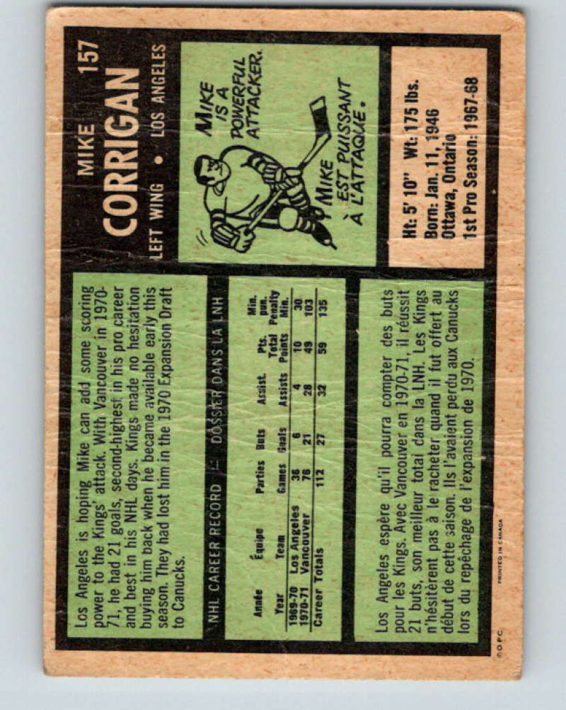 1971-72 O-Pee-Chee #157 Mike Corrigan Los Angeles Kings 8852