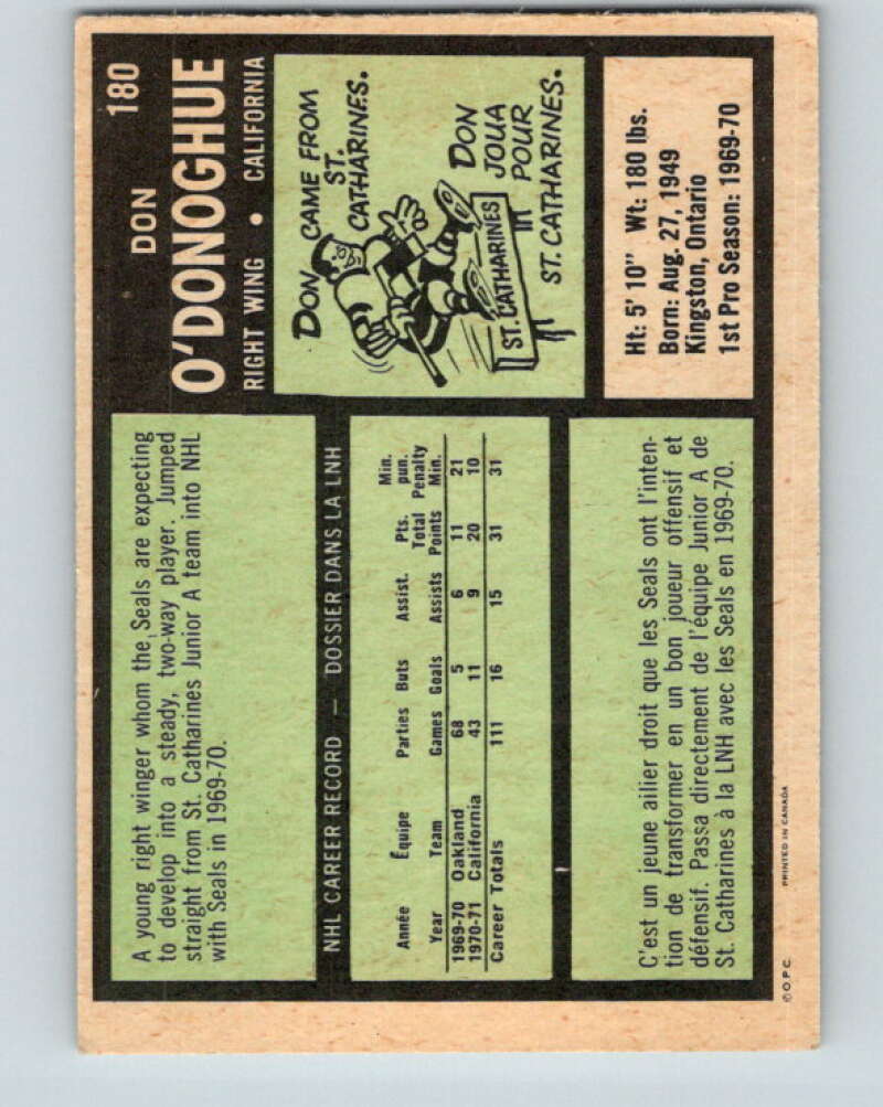 1971-72 O-Pee-Chee #180 Don O'Donoghue RC Rookie California Golden Seals V9522
