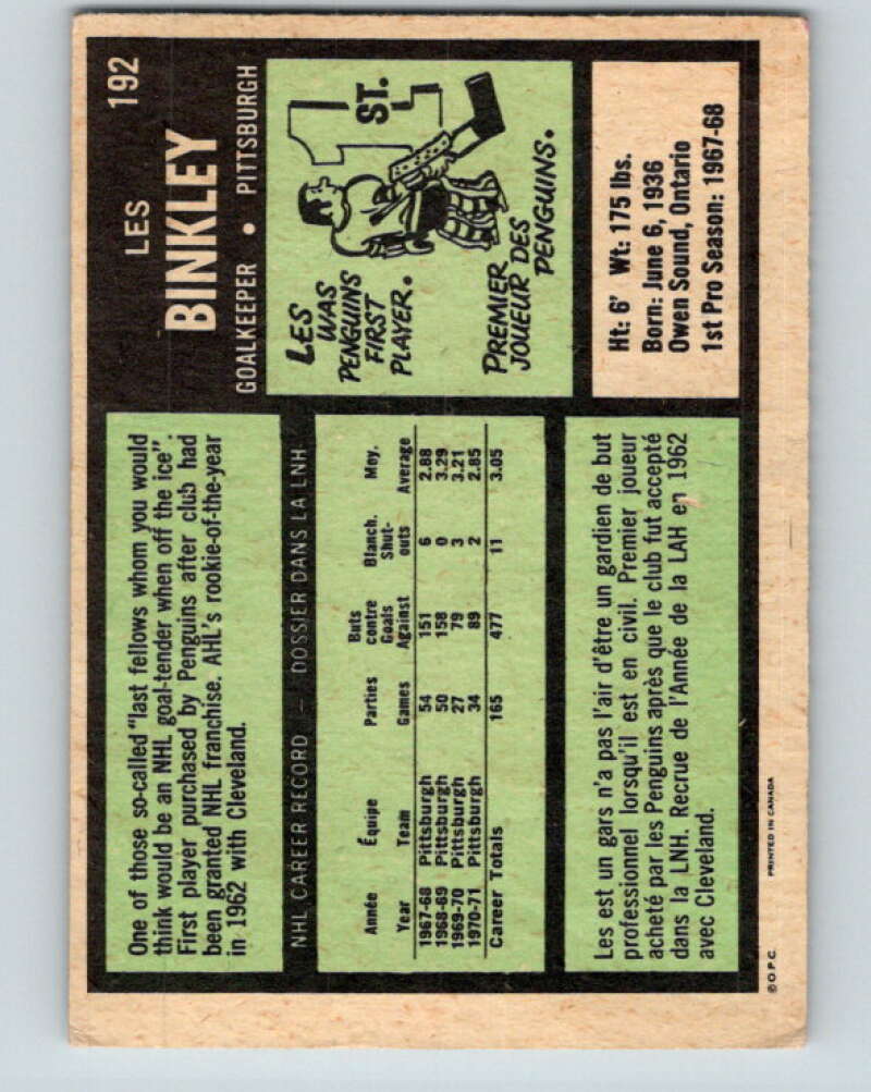 1971-72 O-Pee-Chee #192 Les Binkley Pittsburgh Penguins V9573