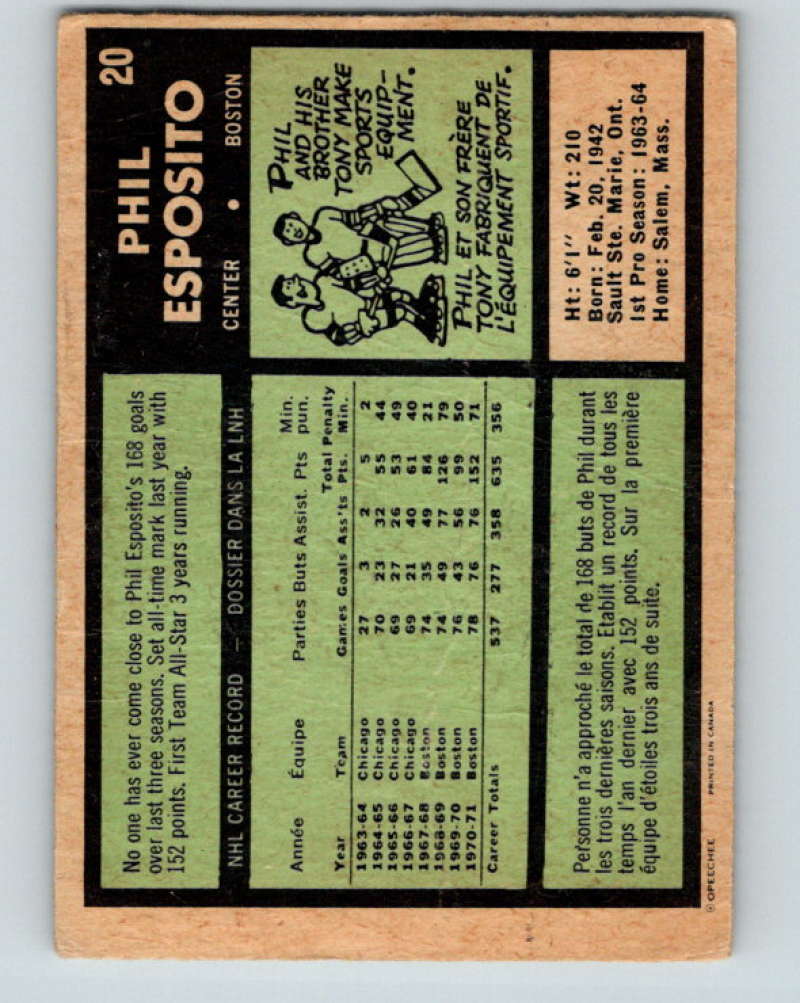 1971-72 O-Pee-Chee #20 Phil Esposito Boston Bruins 8715