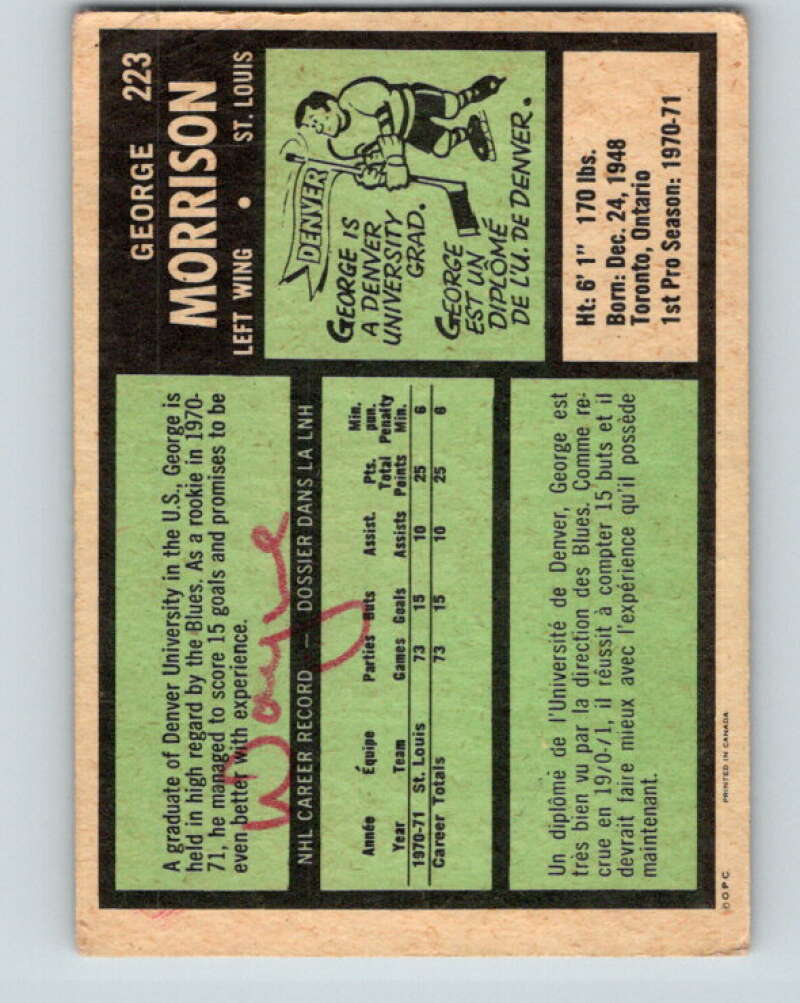 1971-72 O-Pee-Chee #223 George Morrison RC Rookie St. Louis Blues V9694
