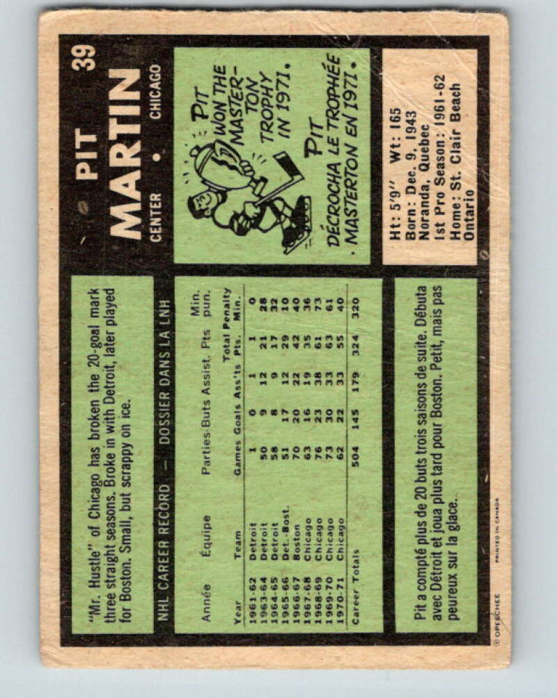 1971-72 O-Pee-Chee #39 Pit Martin Chicago Blackhawks V9083