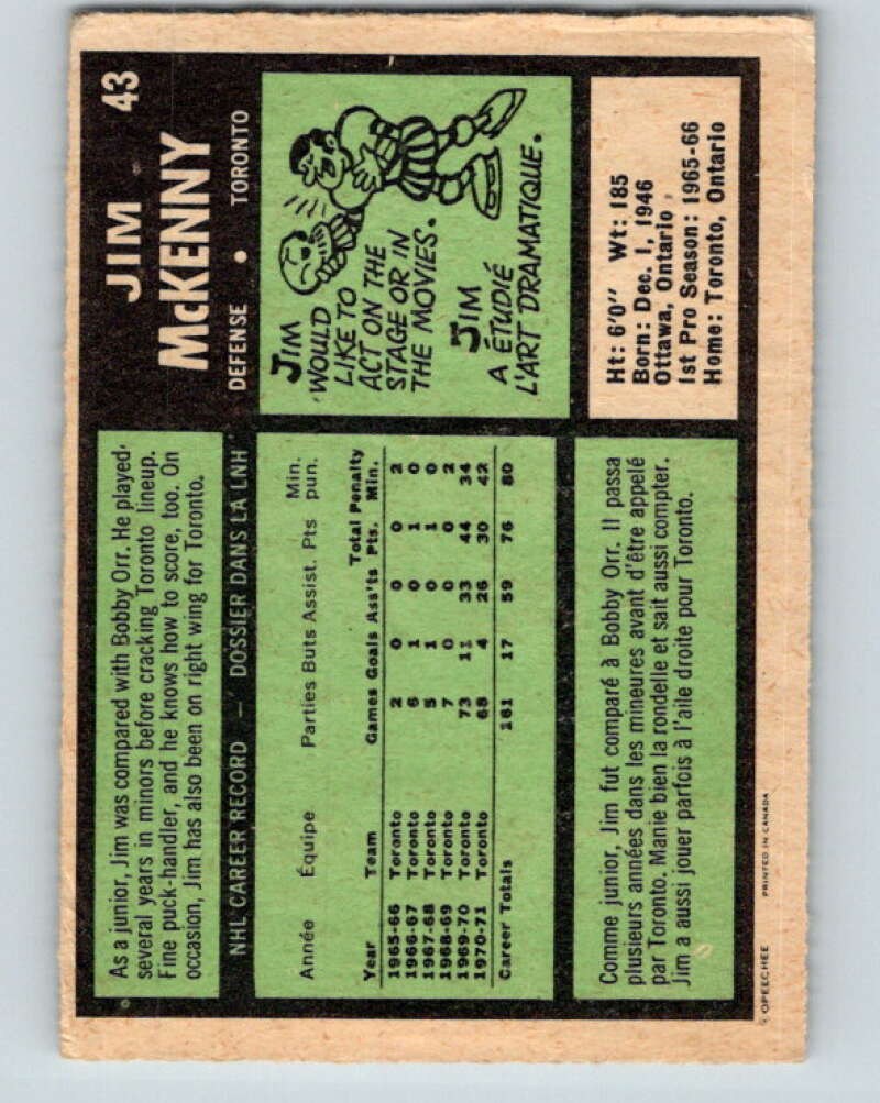 1971-72 O-Pee-Chee #43 Jim McKenny RC Rookie Toronto Maple Leafs V9094