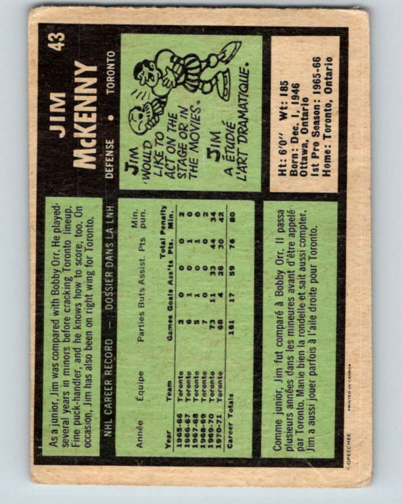 1971-72 O-Pee-Chee #43 Jim McKenny RC Rookie Toronto Maple Leafs V9095