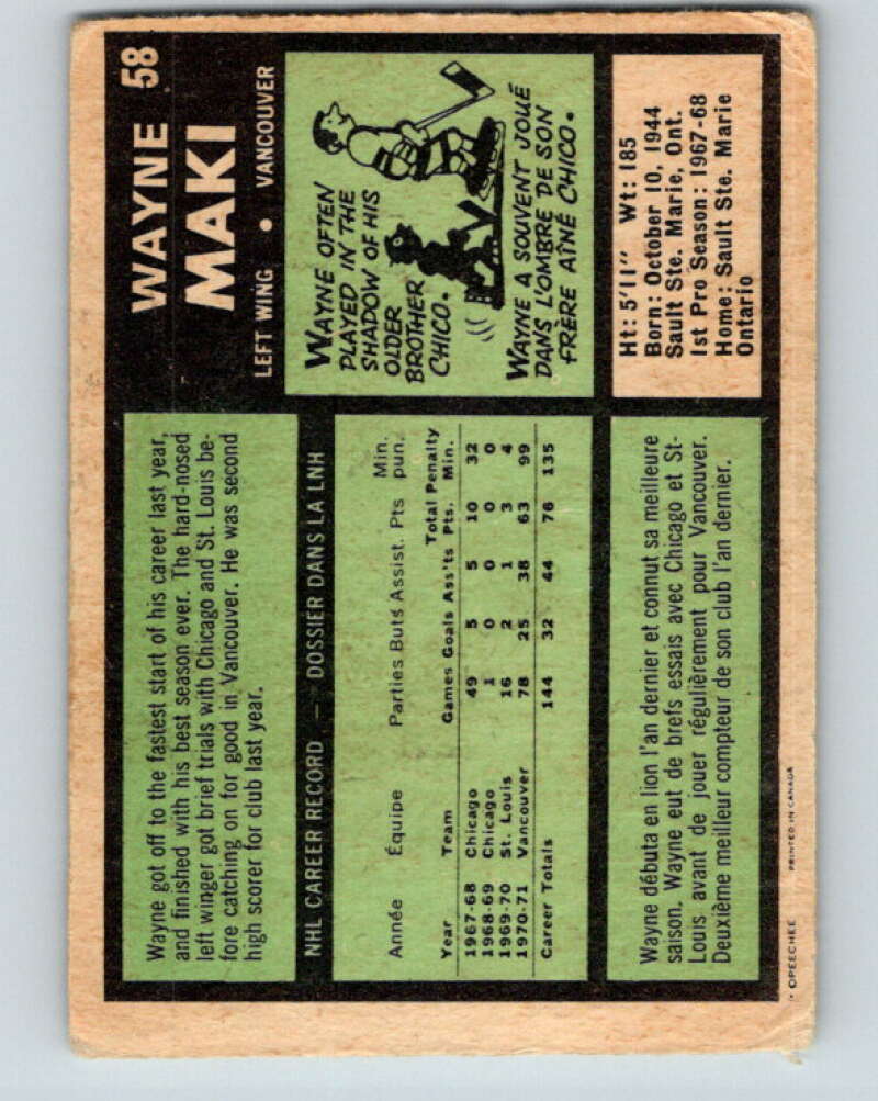1971-72 O-Pee-Chee #58 Wayne Maki Vancouver Canucks V9132